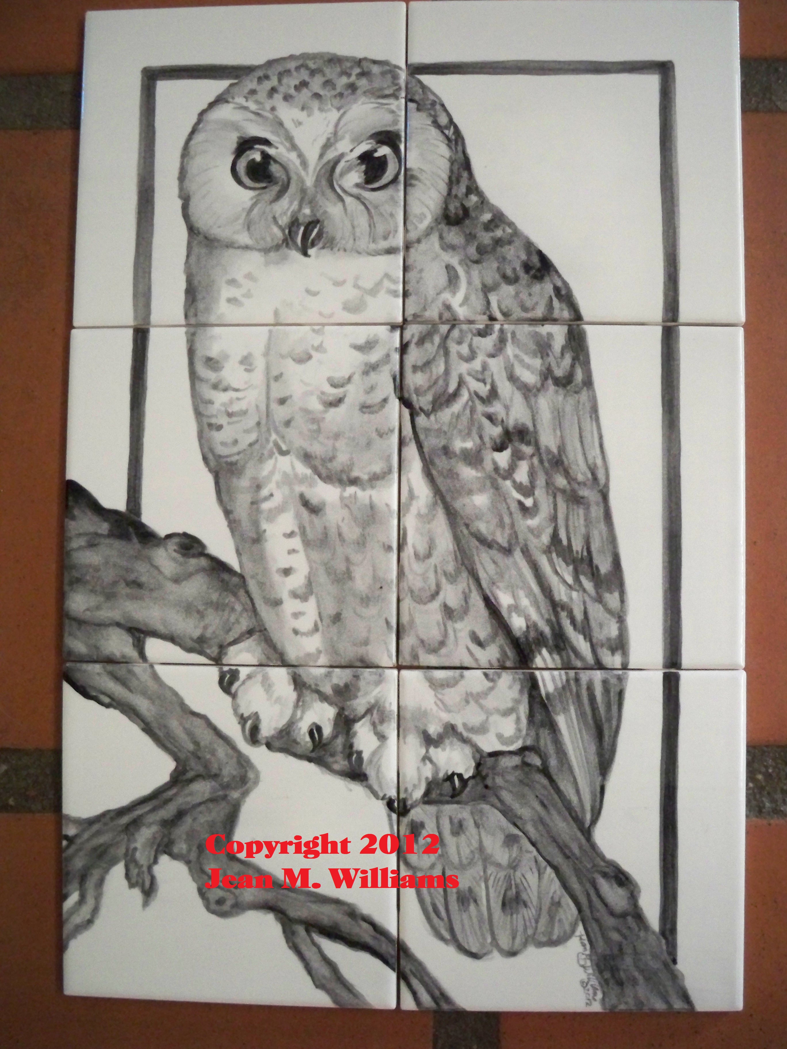 owl tile mural